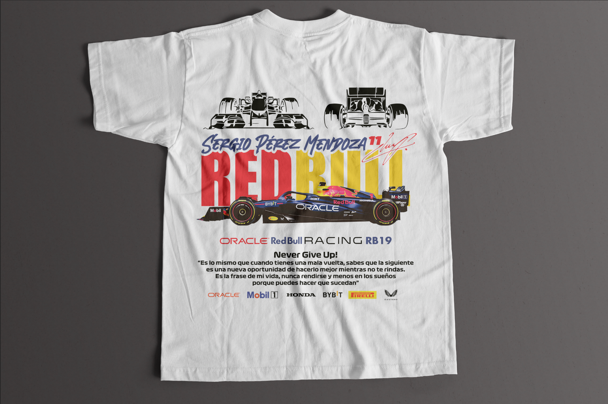 Con su característico esquema de colores azul profundo, acentos rojos y amarillos vibrantes, y el logo de Red Bull en cada ángulo estratégico, este monoplaza representa el espíritu competitivo que define al equipo. Ya sea que estés en las gradas o siguiéndolo desde casa, cada detalle del diseño destaca la excelencia y el rendimiento que han dominado la Fórmula 1 en los últimos años.